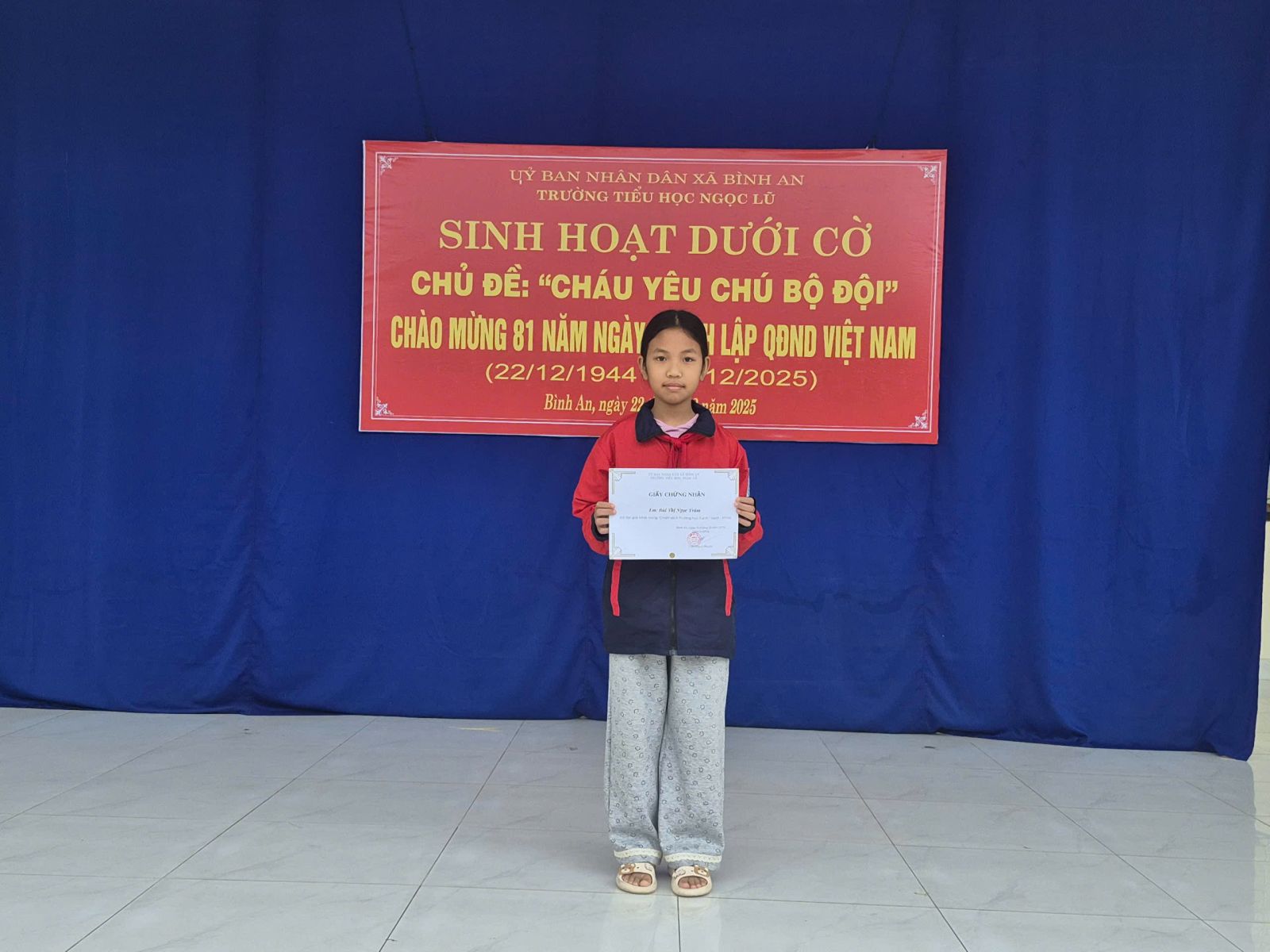 Trường tiểu học Ngọc Lũ tổ chức sinh hoạt dưới cờ với chủ đề “Cháu yêu chú bộ đội” 22/12/2025